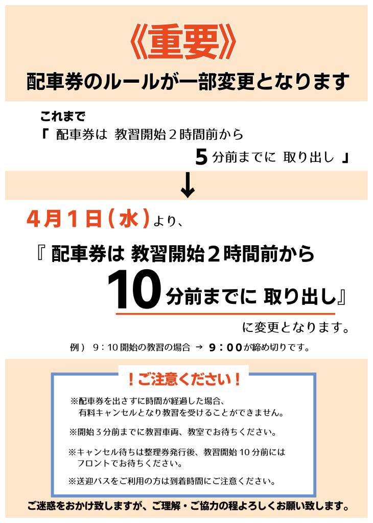 【在校生の方へ】配車券のルール変更について