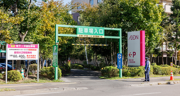 お車でお越しの際は、分かりやすい場所に駐車いただき、屋外にある「桑園自動車学校」入口よりお進みください。