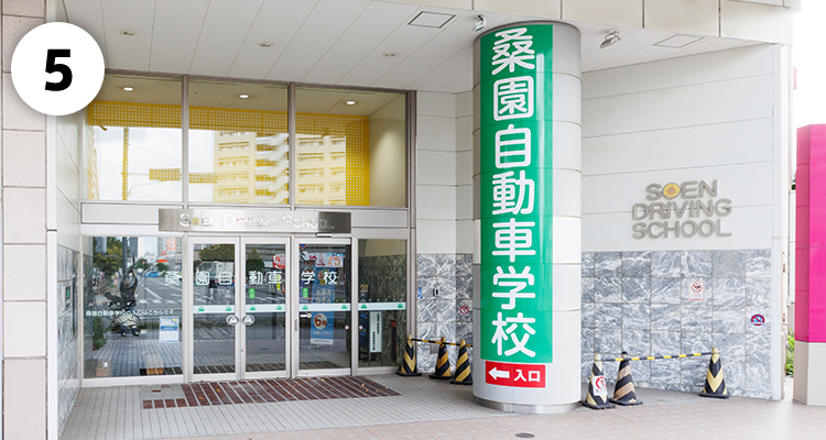 少し歩くと「桑園自動車学校」の看板が見えてきます。