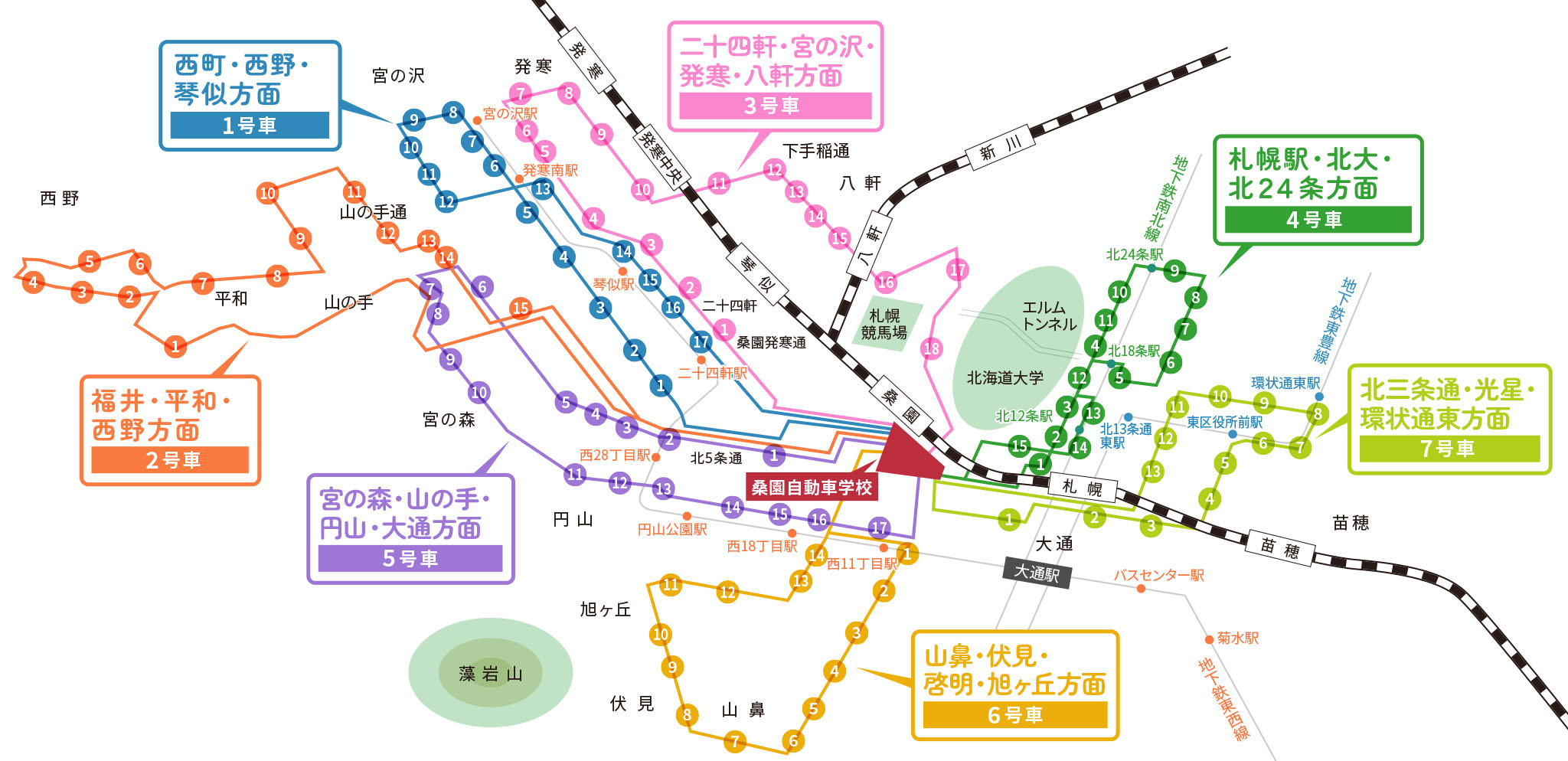 最大の魅力はその利便性。北海道大学をはじめ、多くの学生が学校帰りや講義の合間に桑園自動車学校で教習を受けています。
