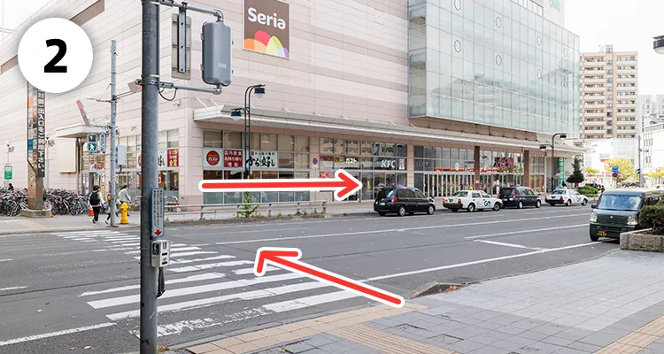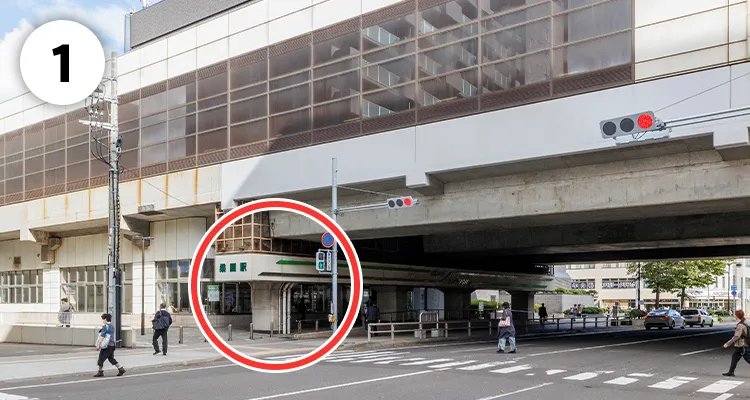 JR桑園駅に到着したら、東改札口から外へ出てください。