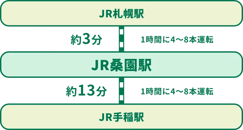 JR札幌駅から1駅、桑園駅から徒歩90秒の好立地。
