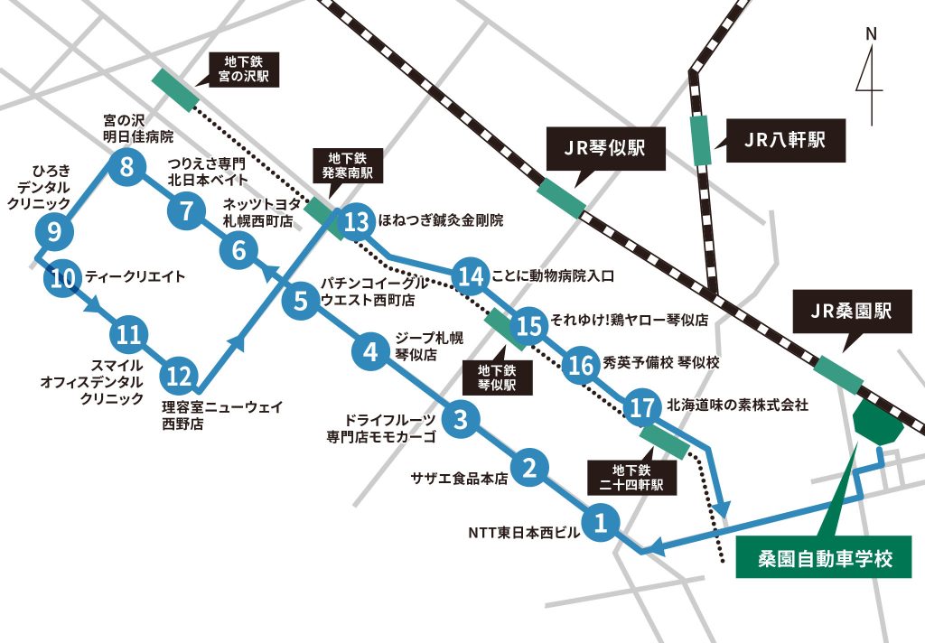6:37 | 7:52 | 9:17 | 10:37 | 11:52 | 13:17 | 14:32 | 15:52 | 17:37 | ◆発車予定時刻の3分前には、 停車位置でお待ちください。 ◆バスが近づきましたら、 必ず手をあげてお知らせください。 合図が無い場合、通過することがあります。 ◆夜の時間帯は、送り専用便を運行します。 上記時間に当校を出発します。 途中からの乗車はできません。 冬期間は、天候・路面状況・交通渋滞等により、 遅れや運休が発生する場合があります。 |